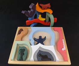 Twenty pieces, including five creatures and a tree, in five different color groups. Create fantastic landscapes, or try to stack the arches.